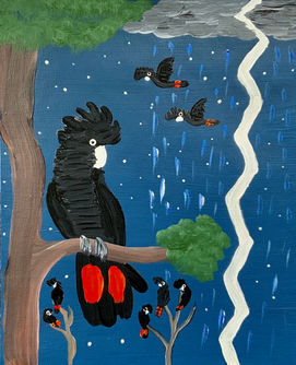 In the vast desert landscapes of Central Australia, the sound of black cockatoos cutting across the sky is unmistakable, loud, rhythmic, and full of presence. For Luritja artist Kukula McDonald, these birds are more than a familiar sight; they are companions, storytellers, and a constant source of inspiration.